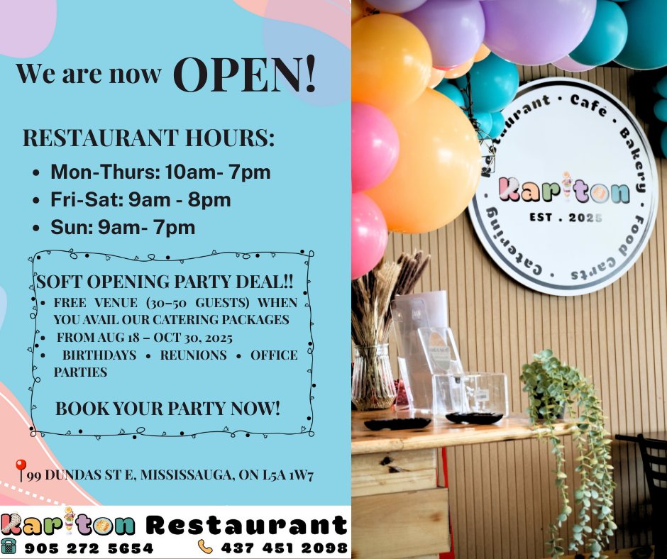From humble beginnings as a small food cart serving Filipino street food favorites like isaw, kwek-kwek, and betamax, Kariton has grown into a full restaurant where families and friends can enjoy authentic flavors and memorable celebrations.